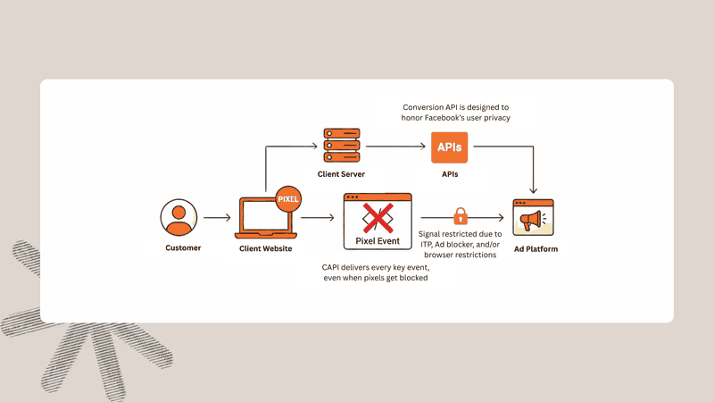 Why CAPI works: The Conversion API (CAPI) sends events directly from your server, providing a stable data path that browsers or devices cannot block.